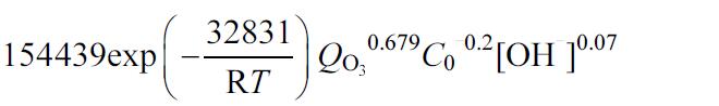 3 在本實驗設定的條件下(KET 初始濃度2~40μmol/L,臭氧流量0.06~0.6L/min,溫度為288~318K,初始pH 值為4~10),KET 的降解符合一級動力學,表觀動力學方程為k=