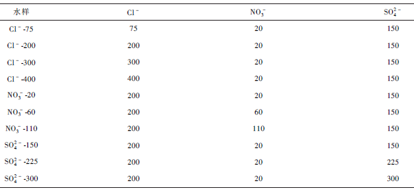 表3 模擬水樣的無機離子含量