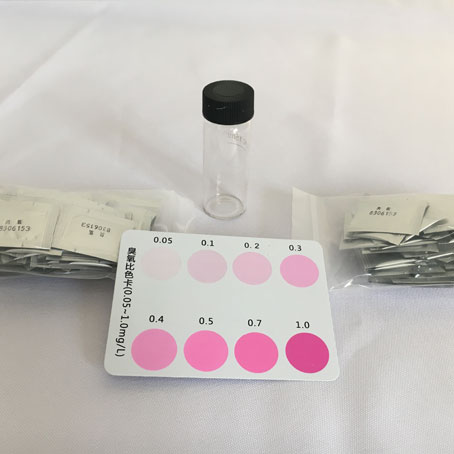 檢測原理: N,N二乙基對苯二胺(DPD)-碘化鉀(KI)測試臭氧水中濃度的原理為,臭氧與DPD發生反應呈紅色,顯色深淺與水中臭氧含量呈線性關系。