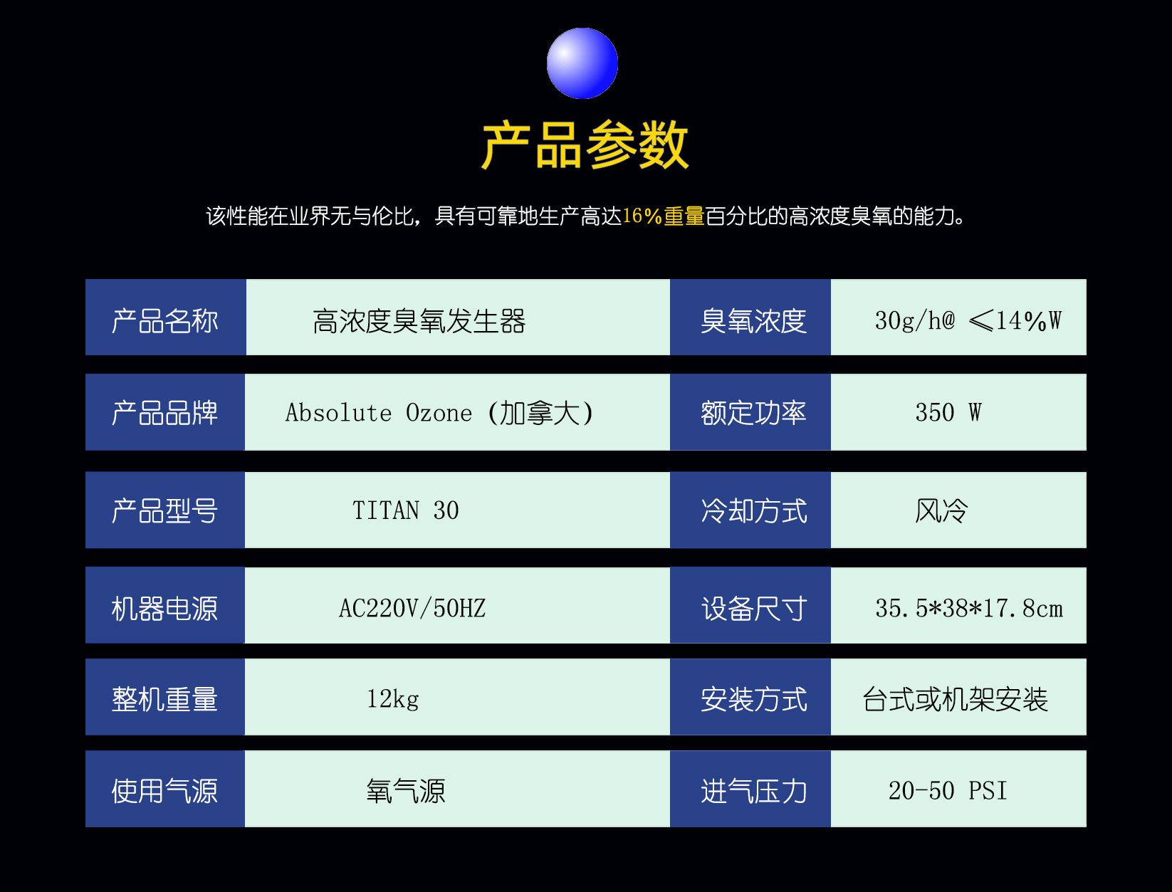 加拿大absoluteozone Prime P30高濃度臭氧發生器(實驗用)